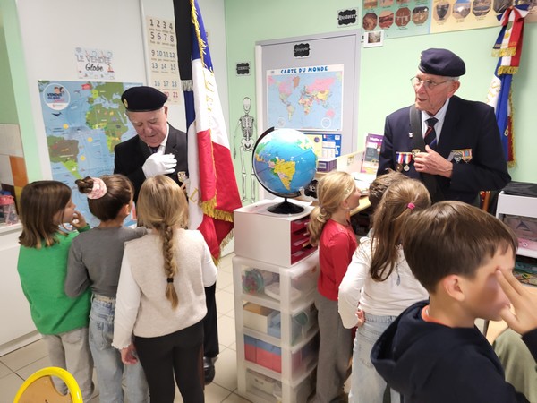 Dans le cadre de la commémoration du 11 novembre, nous avons commencé la période par accueillir des membres de l’Union Nationale des Anciens Combattants. Ils ont présenté leur travail de mémoire et ont pu répondre aux questions nombreuses des élèves. Ces derniers ont pu porter les drapeaux, observer de près les médailles portées par ces anciens combattants.
