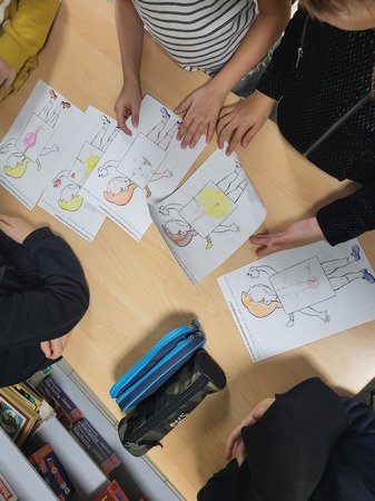 Après avoir mangé un morceau de pomme, les enfants ont dessiné le devenir de cette pomme dans leur corps. Ils ont ensuite confronté leurs idées.