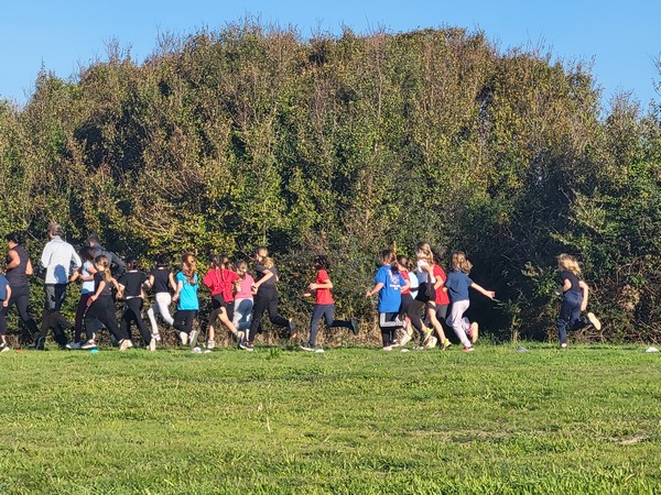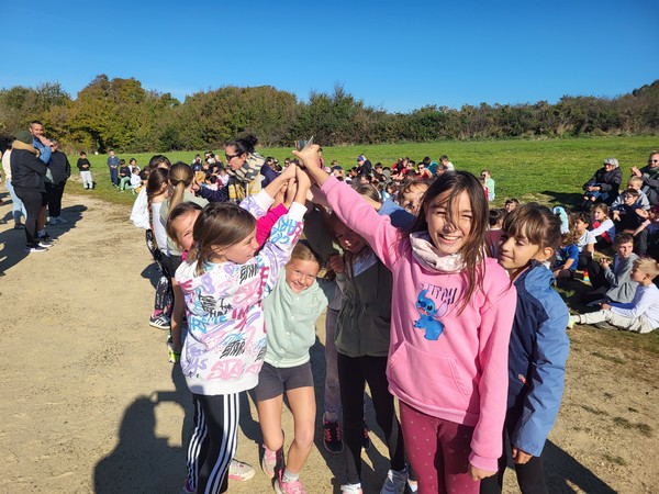 Les élèves de CE2-CM1-CM2 ont rejoint les élèves des écoles privées de Givrand, Brem-sur-Mer et Landevieille pour participer au cross sur le site des Morinières.